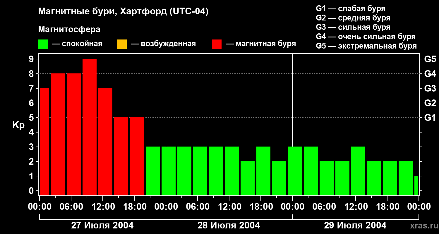 Магнитные бури в Хартфорде — 29 июля 2004 года