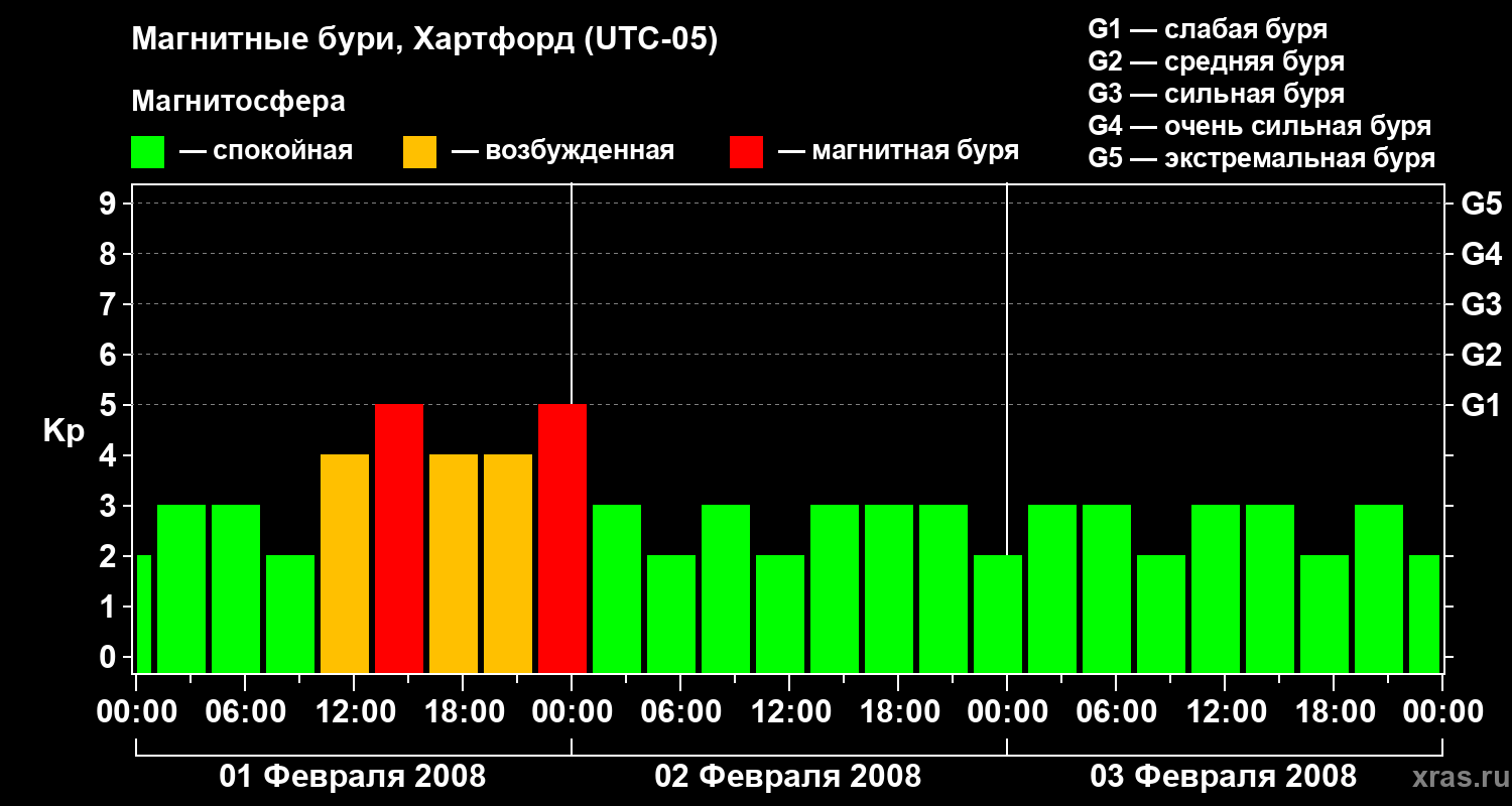 Магнитные бури в Хартфорде 3 февраля 2008 года