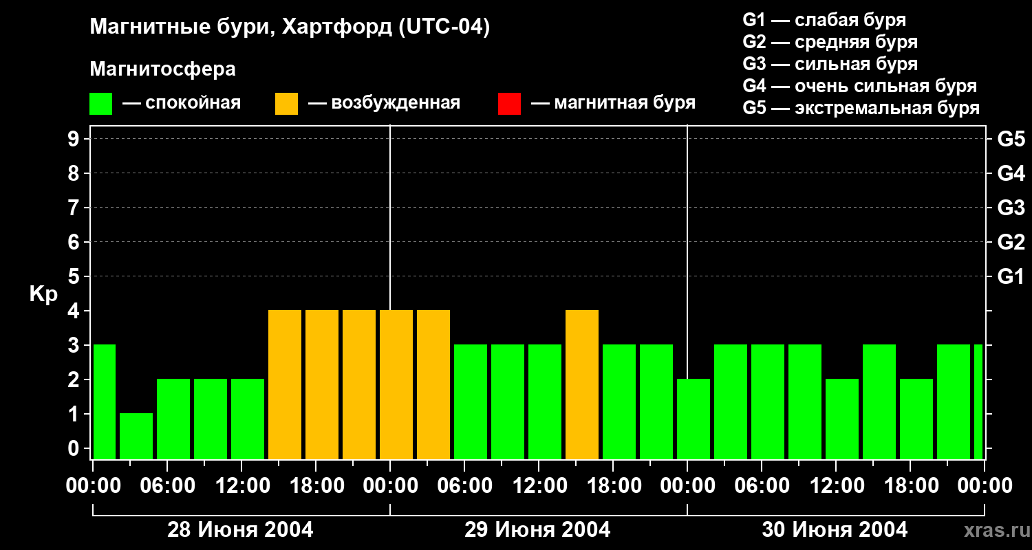 Магнитные бури в Хартфорде — 30 июня 2004 года