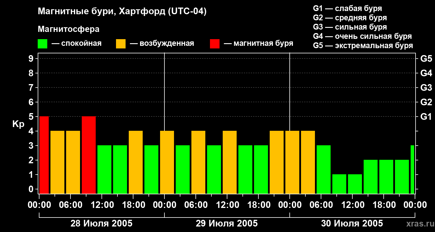 Магнитные бури в Хартфорде — 30 июля 2005 года