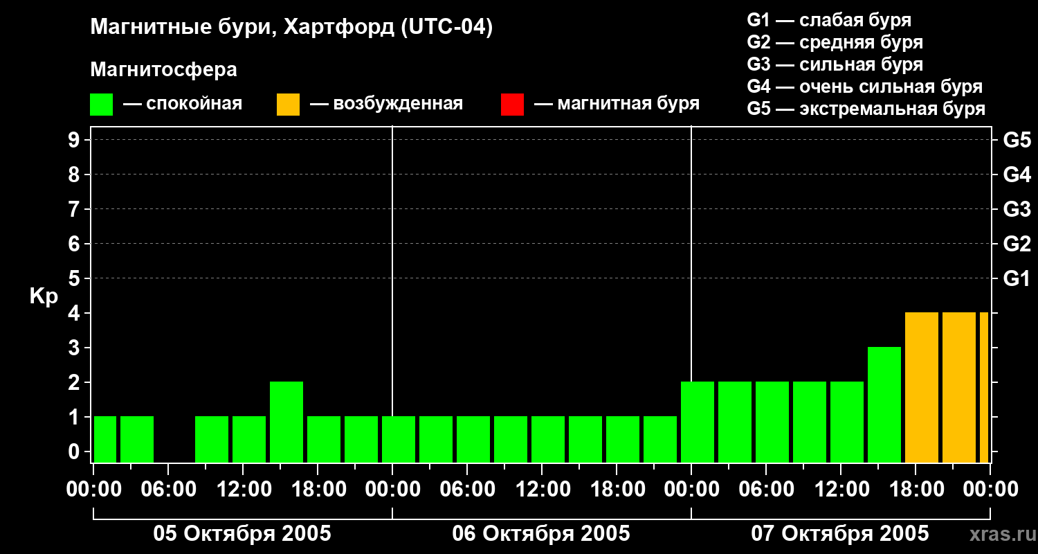 Магнитные бури в Хартфорде 7 октября 2005 года