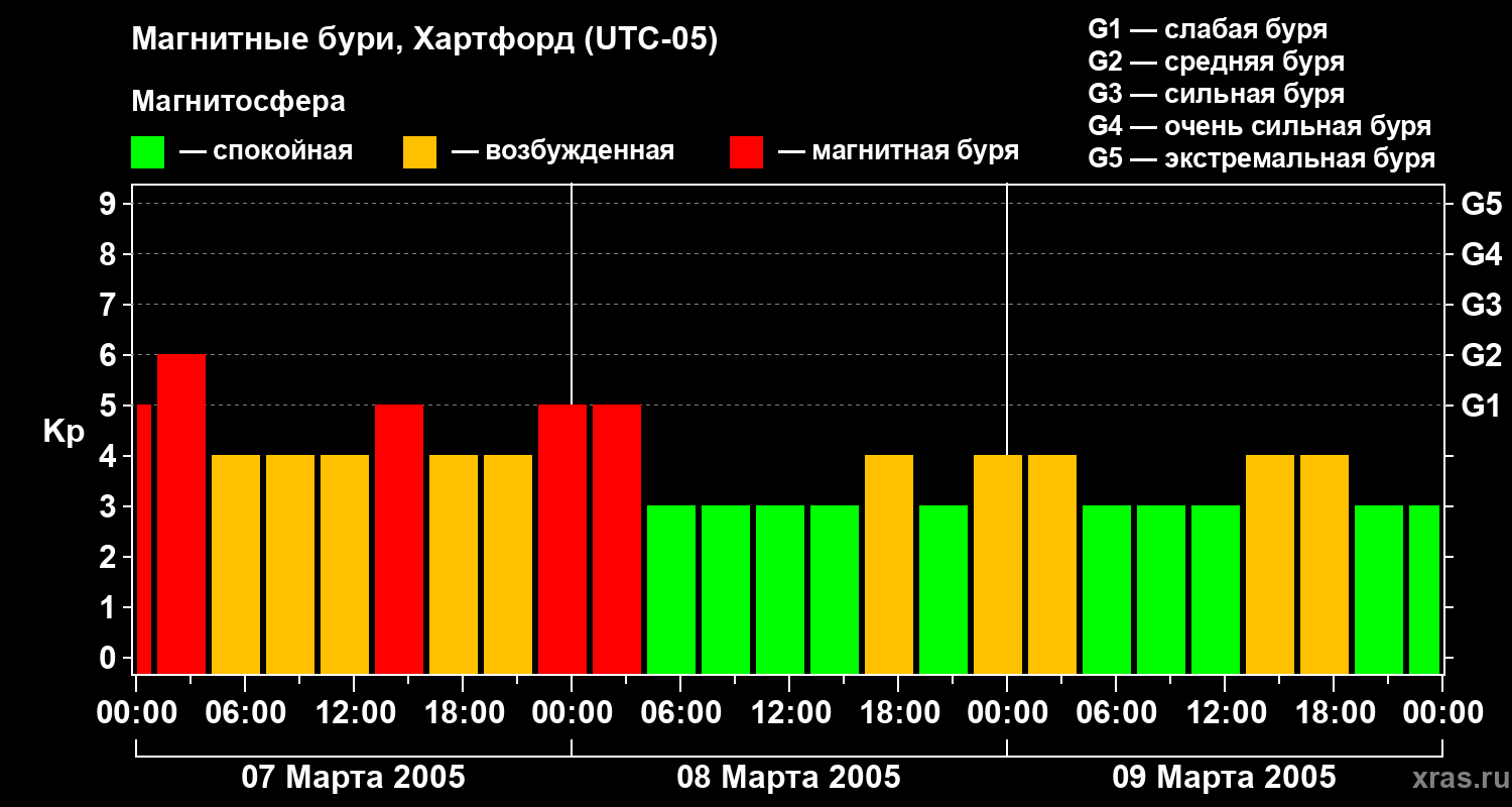 Магнитные бури в Хартфорде — 9 марта 2005 года