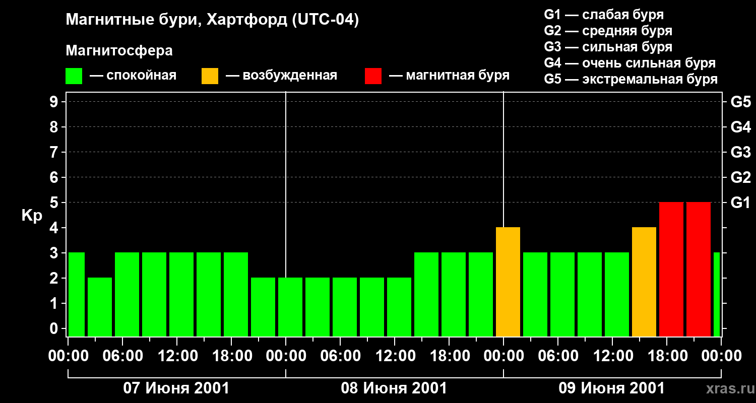 Магнитные бури в Хартфорде 9 июня 2001 года