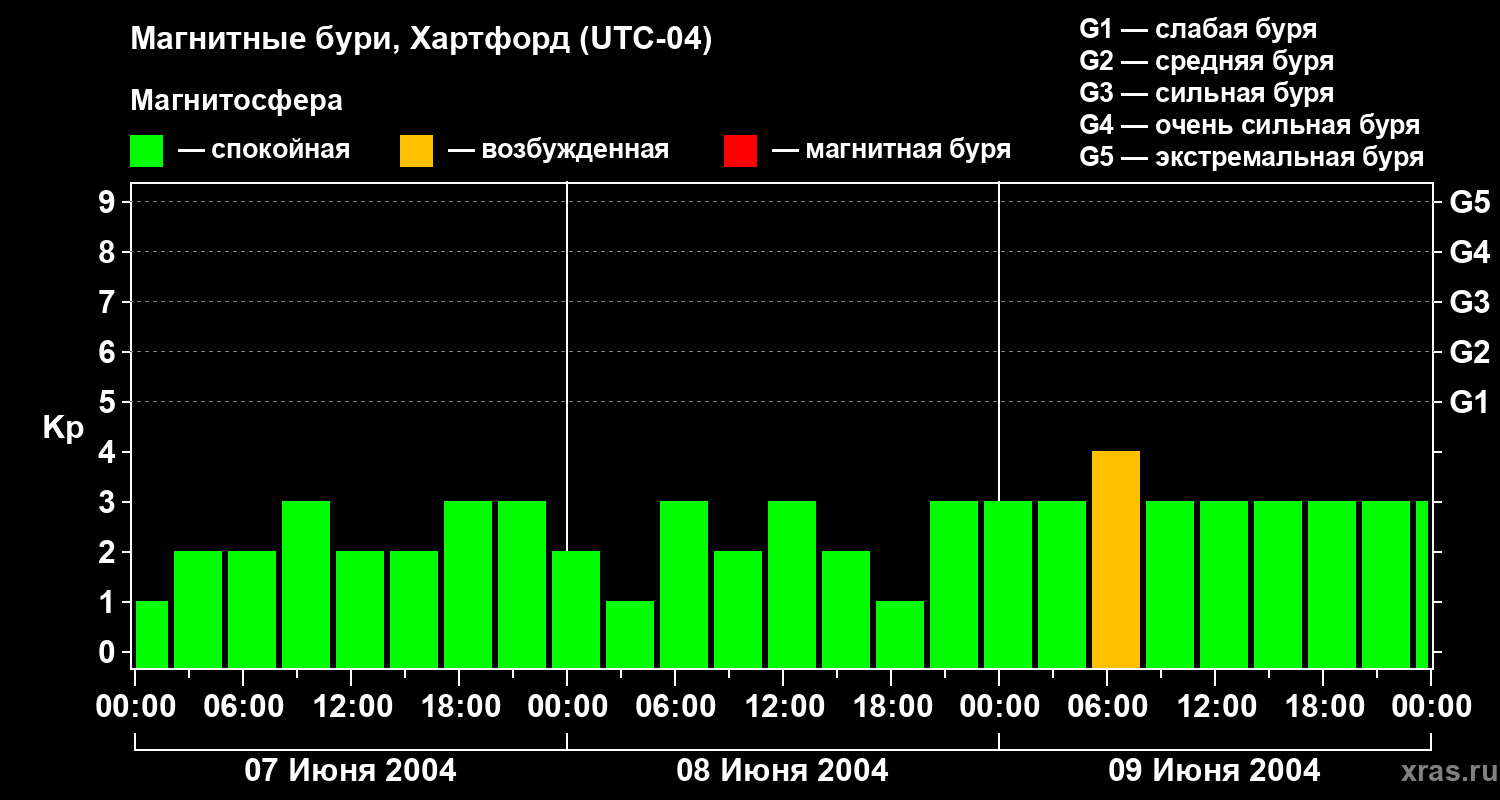 Магнитные бури в Хартфорде — 9 июня 2004 года