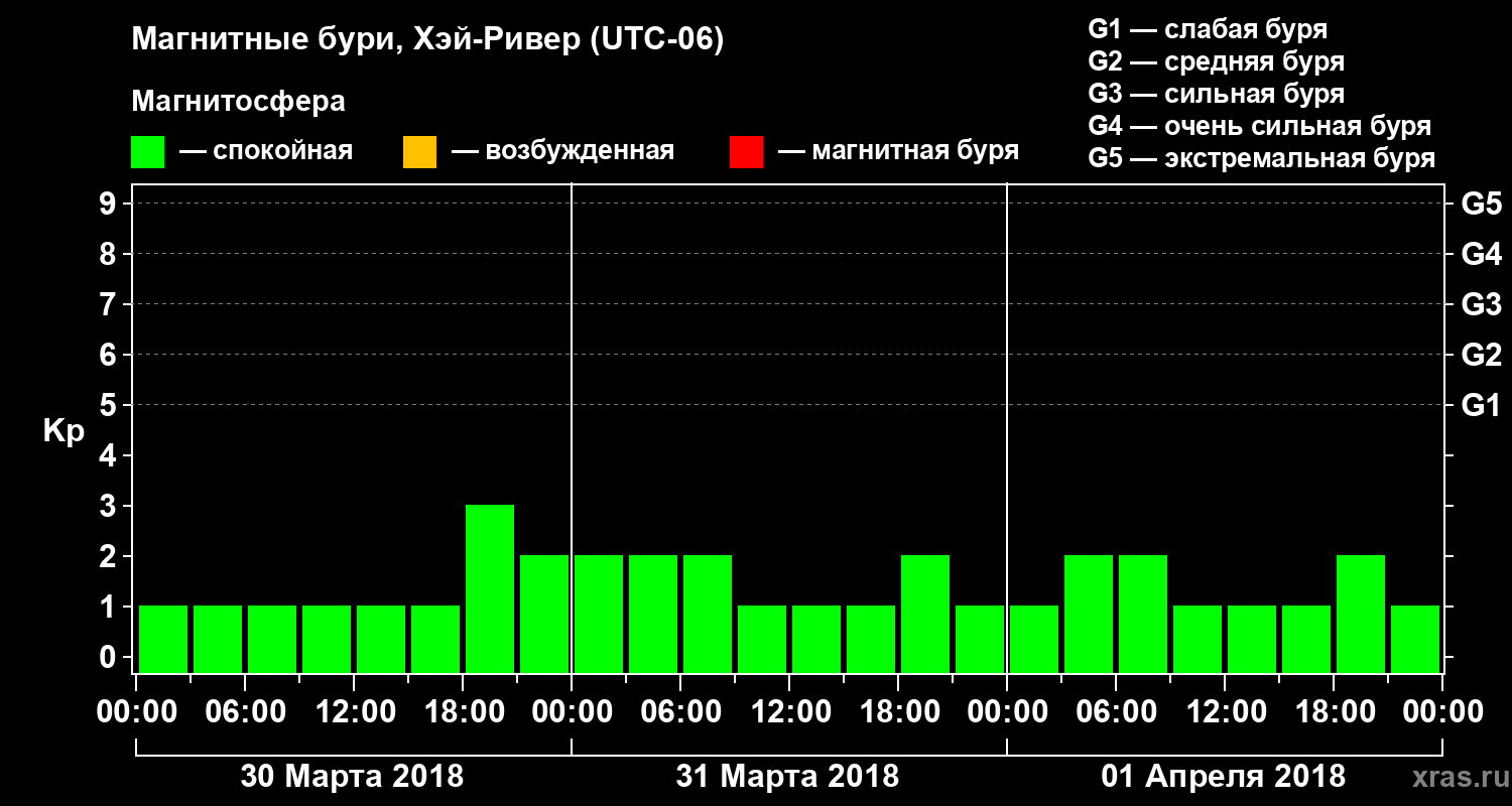 Магнитные бури в Хэй-Ривере 1 апреля 2018 года