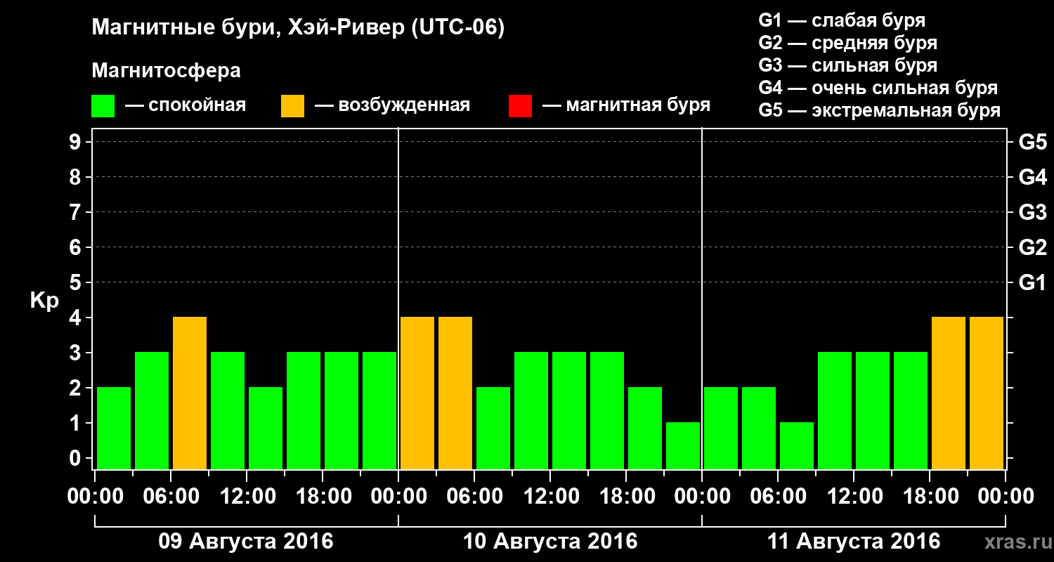 Магнитные бури в Хэй-Ривере 11 августа 2016 года