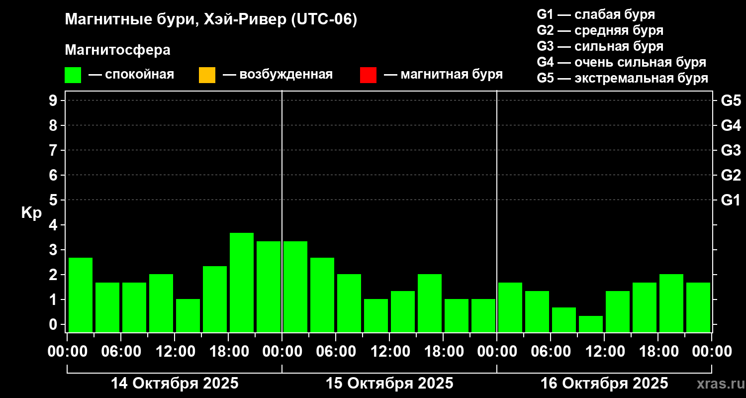 Магнитные бури в Хэй-Ривере — 16 октября 2025 года