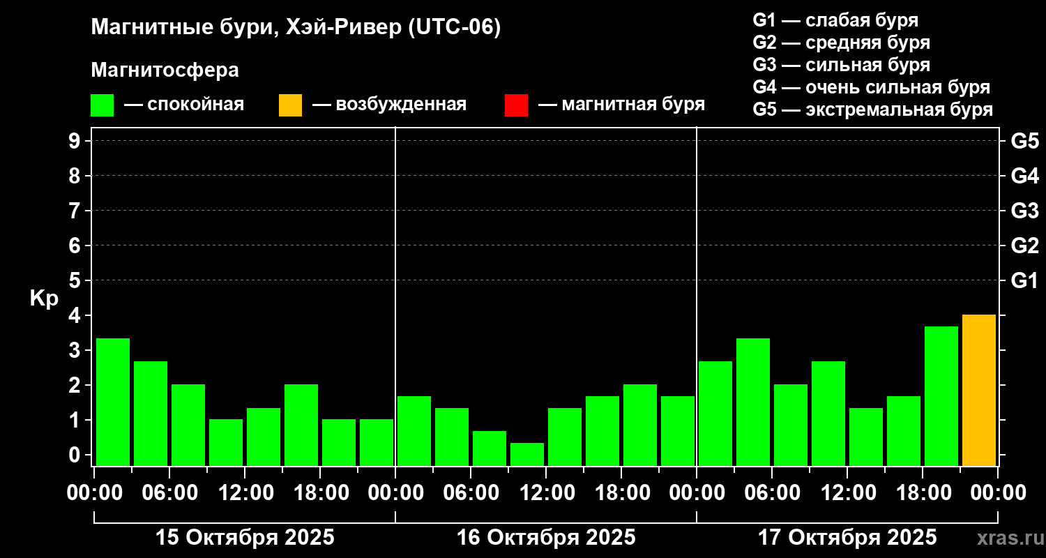 Магнитные бури в Хэй-Ривере — 17 октября 2025 года