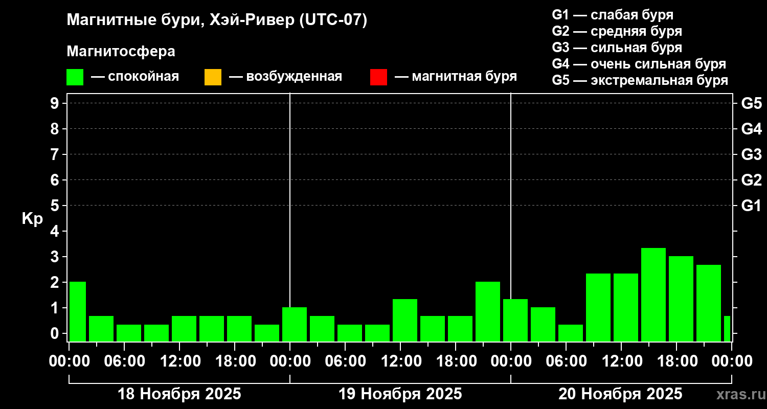Магнитные бури в Хэй-Ривере 20 ноября 2025 года