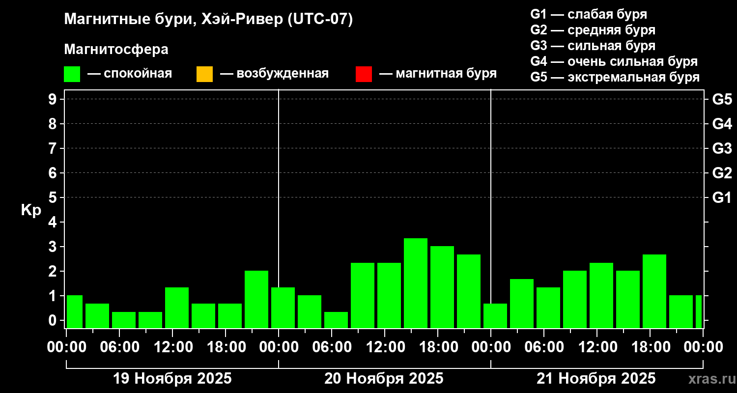 Магнитные бури в Хэй-Ривере 21 ноября 2025 года