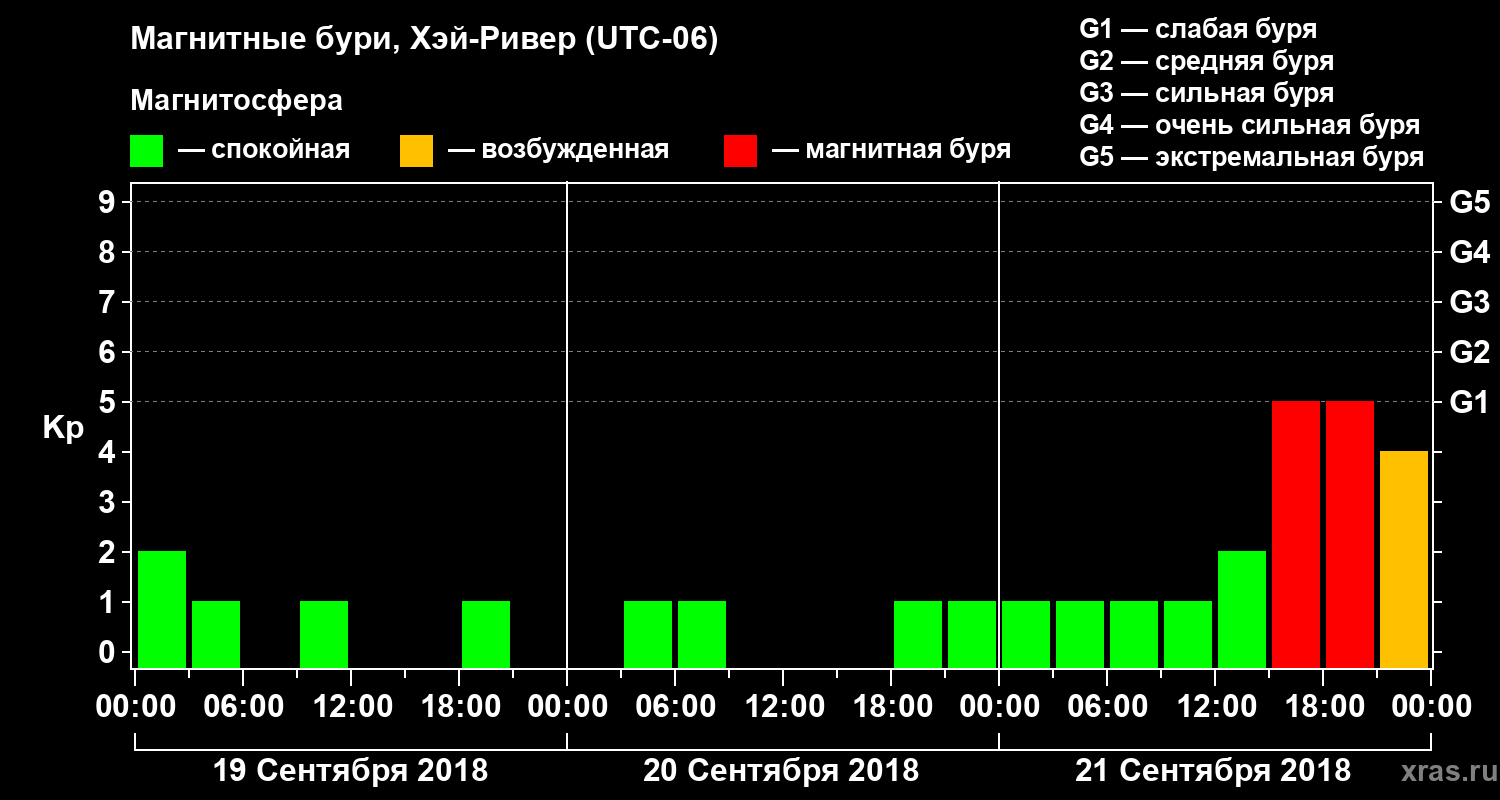 Магнитные бури в Хэй-Ривере 21 сентября 2018 года