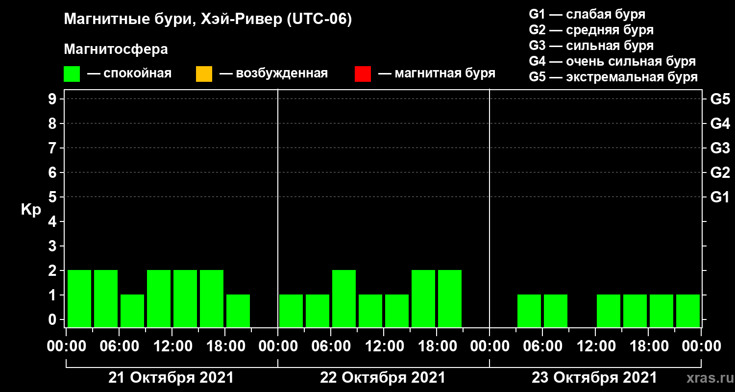 Магнитные бури в Хэй-Ривере 23 октября 2021 года