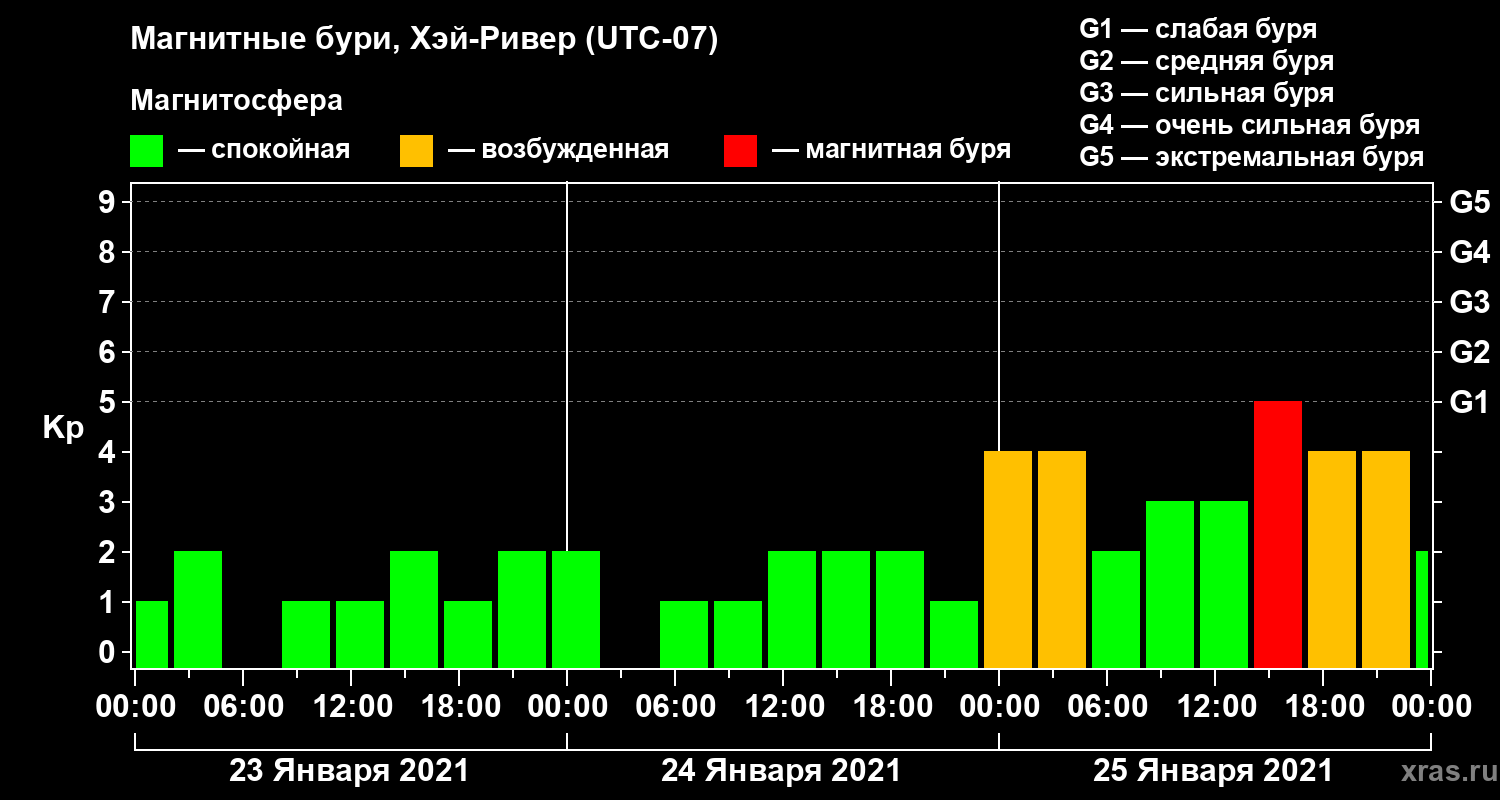 Магнитные бури в Хэй-Ривере — 25 января 2021 года