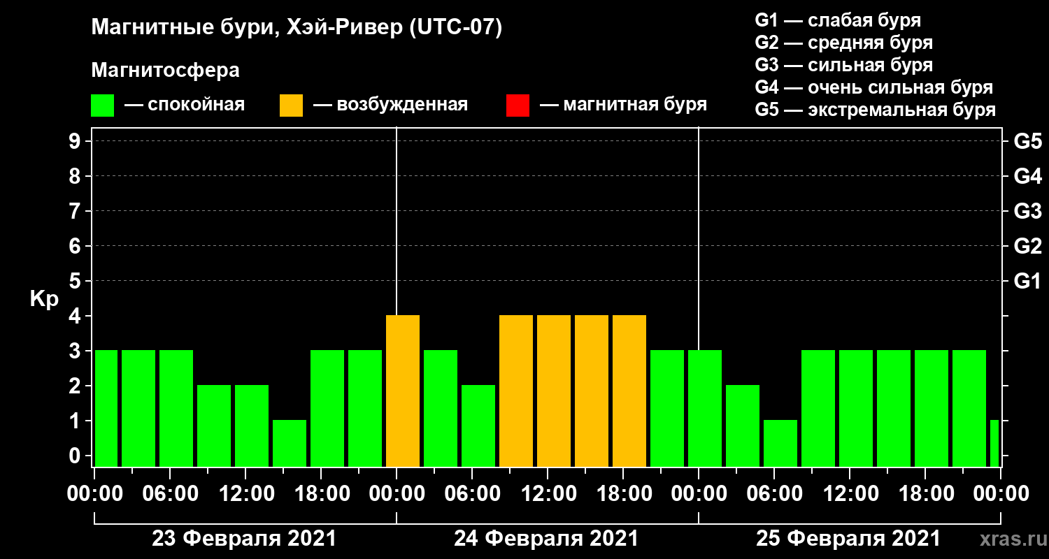 Магнитные бури в Хэй-Ривере — 25 февраля 2021 года