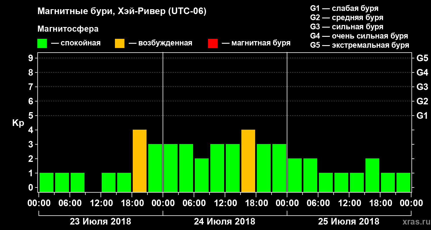 Магнитные бури в Хэй-Ривере 25 июля 2018 года