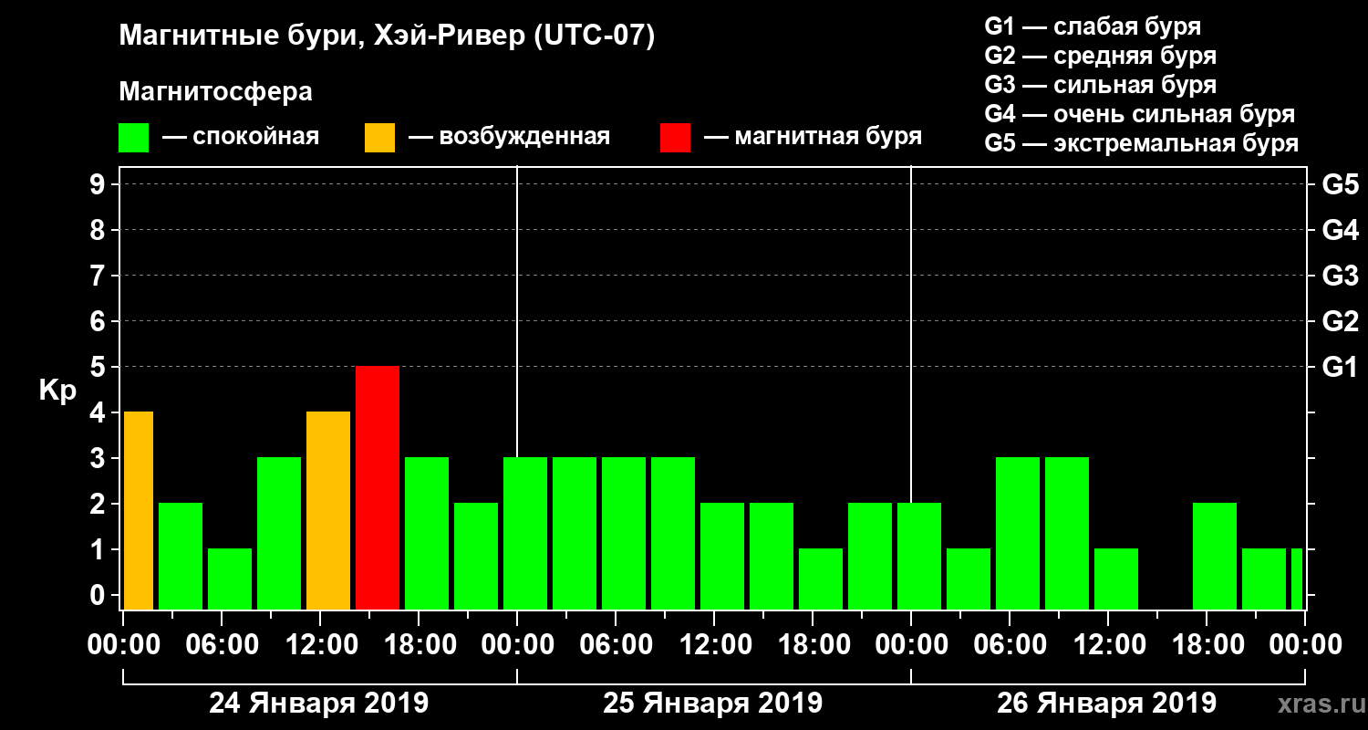 Магнитные бури в Хэй-Ривере 26 января 2019 года