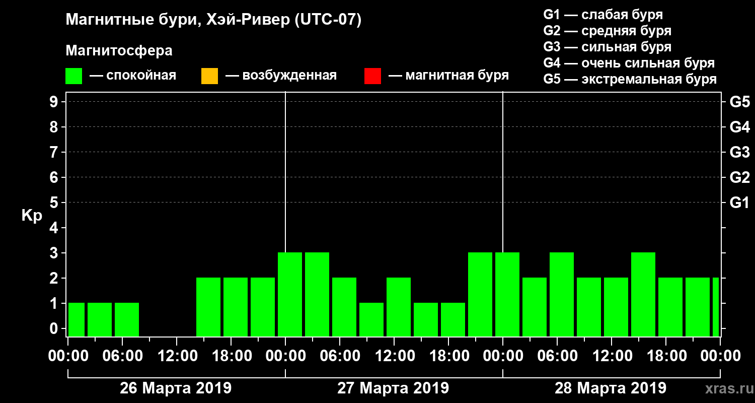 Магнитные бури в Хэй-Ривере 28 марта 2019 года