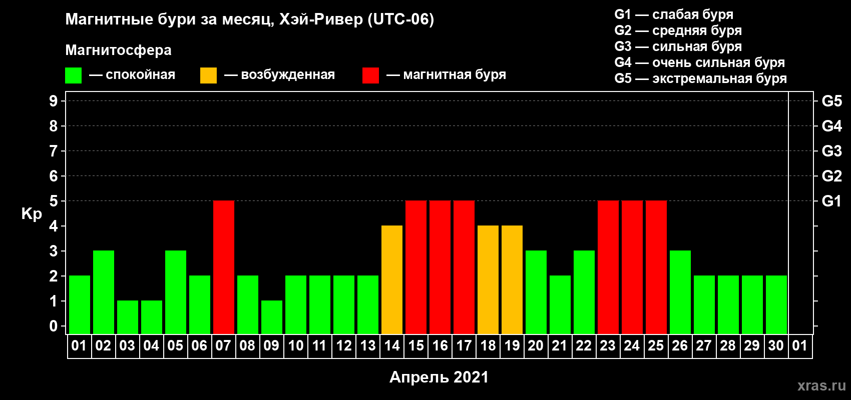 Магнитные бури в Хэй-Ривере в апреле 2021 года