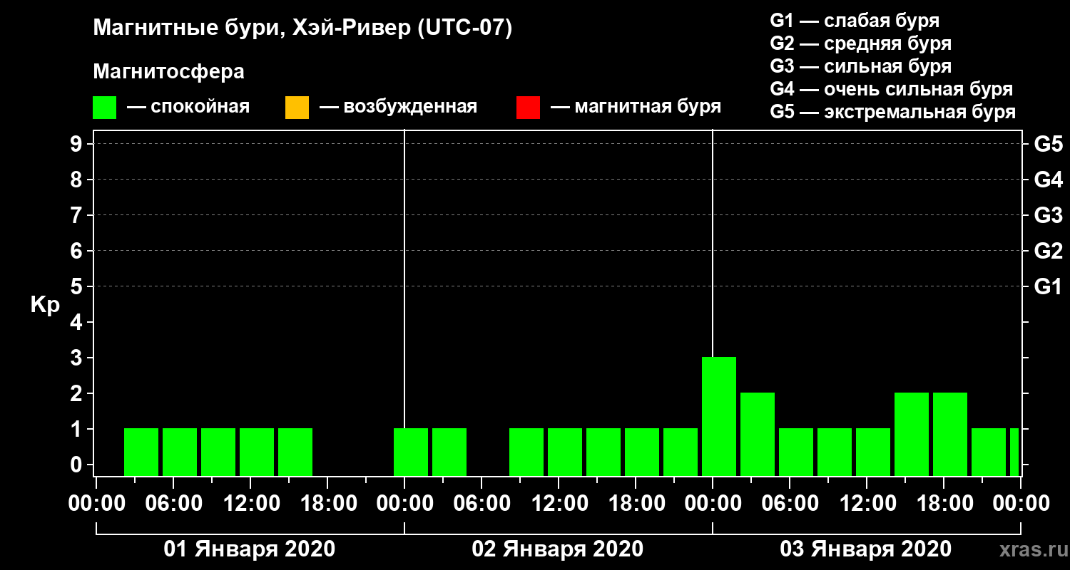 Магнитные бури в Хэй-Ривере 3 января 2020 года