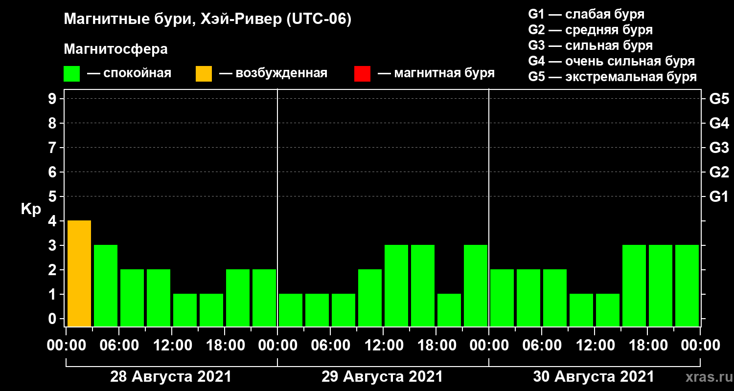 Магнитные бури в Хэй-Ривере 30 августа 2021 года
