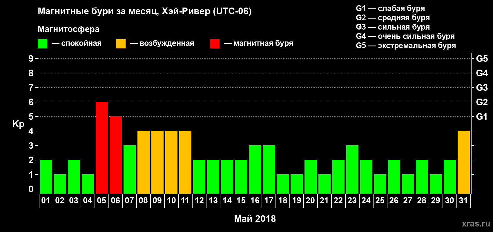 Магнитные бури в Хэй-Ривере 31 мая 2018 года