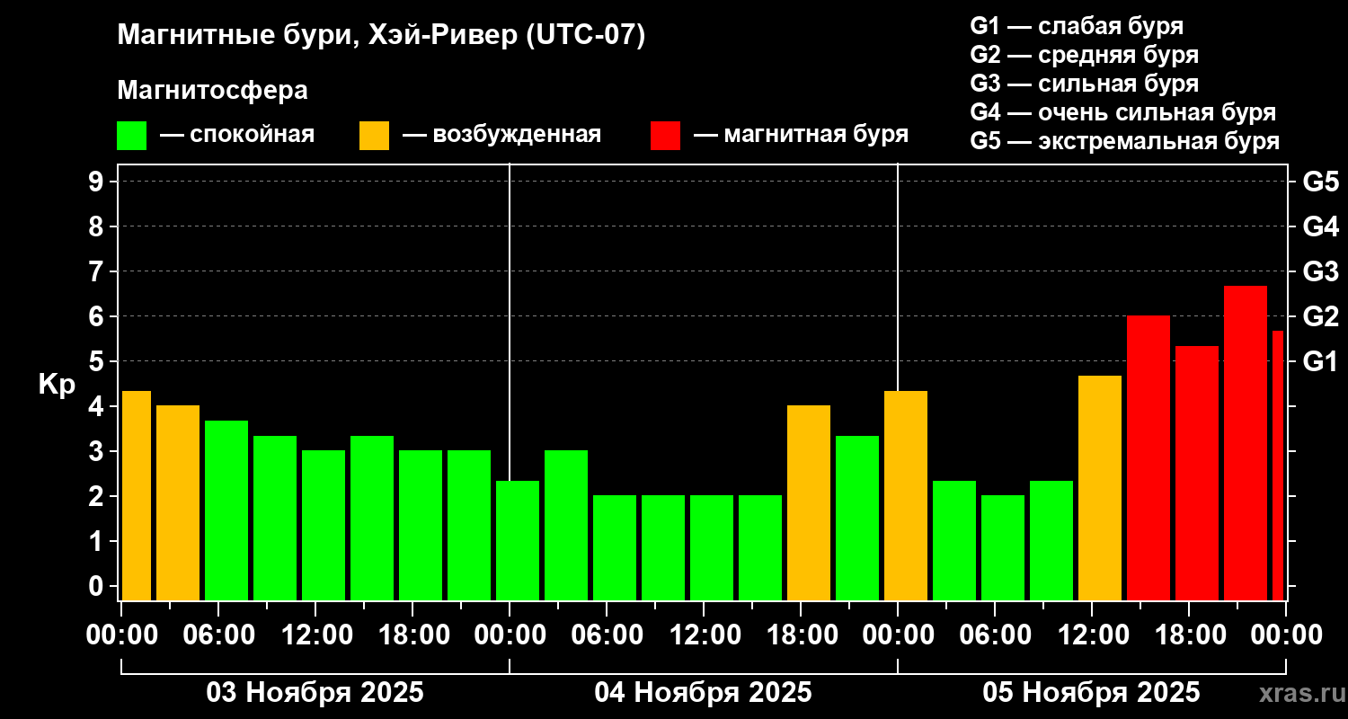 Магнитные бури в Хэй-Ривере 5 ноября 2025 года