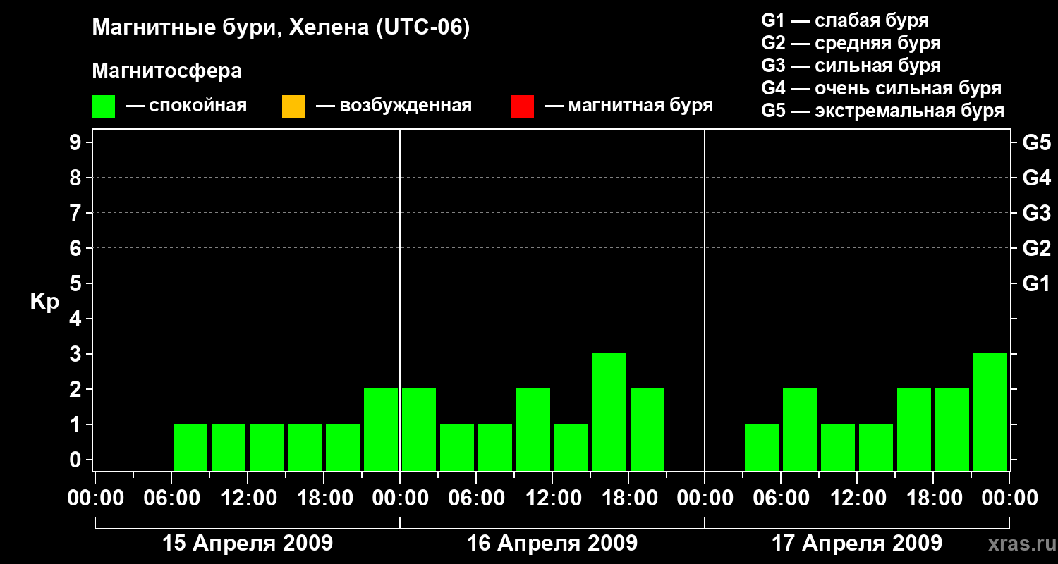 Магнитные бури в Хелене — 17 апреля 2009 года