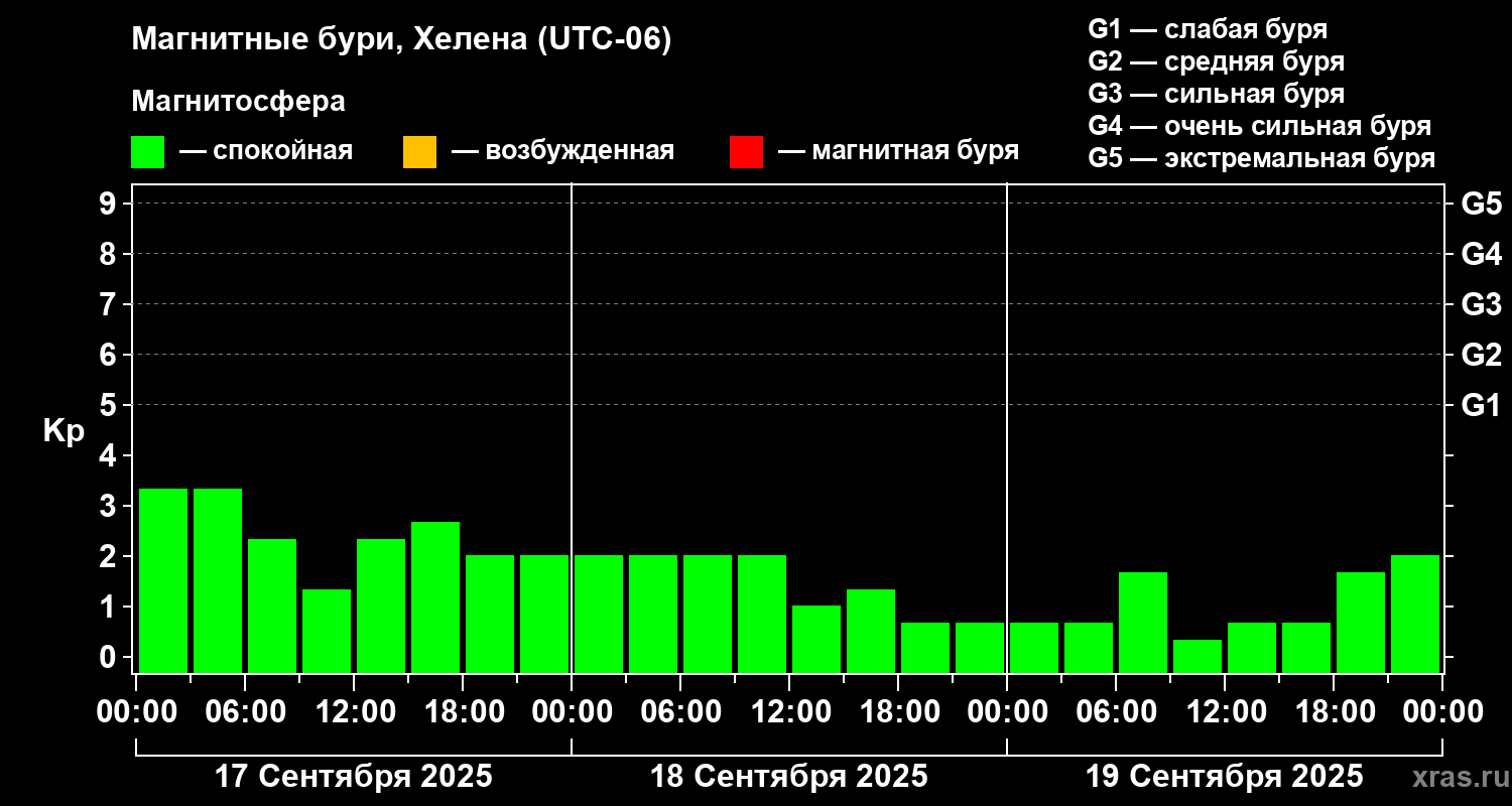 Магнитные бури в Хелене — 19 сентября 2025 года