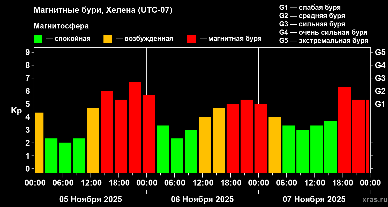 Магнитные бури в Хелене — 7 ноября 2025 года