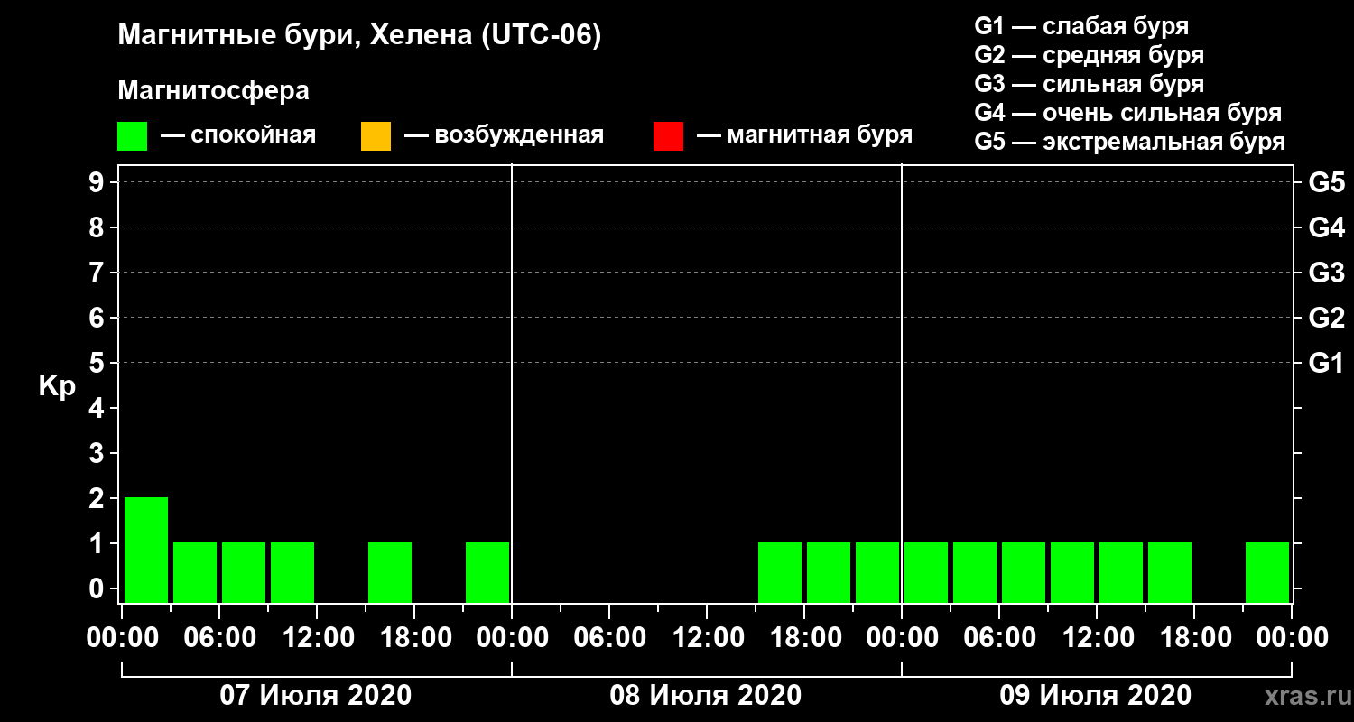 магнитосфера Земли была спокойной (Kp = 1.00)