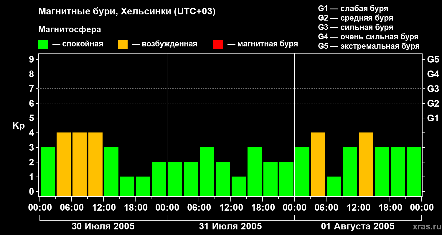 Магнитные бури Хельсинки 1 августа 2005 года