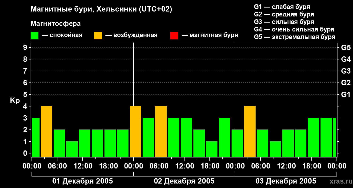 Магнитные бури Хельсинки 3 декабря 2005 года