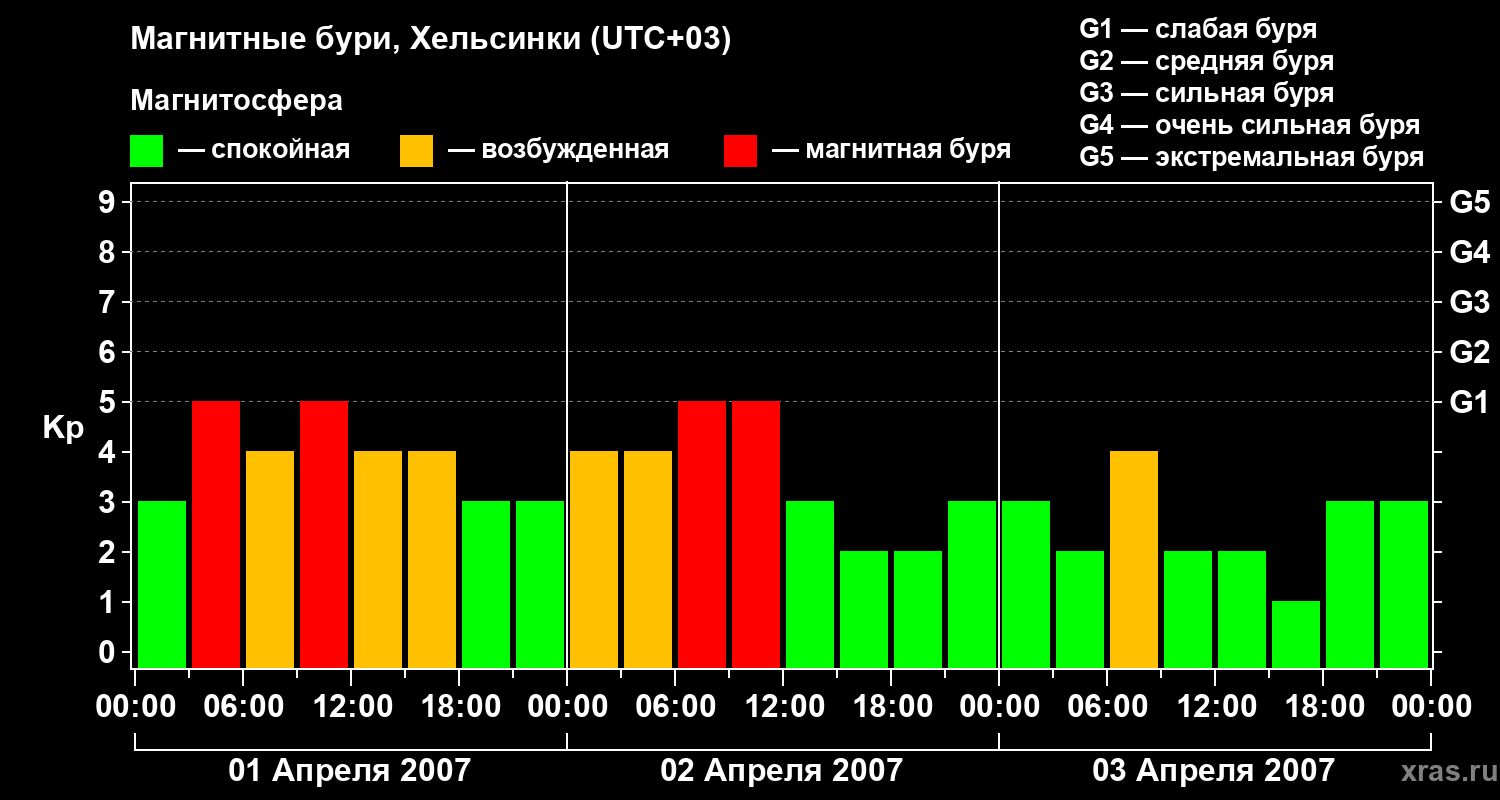 Магнитные бури Хельсинки 3 апреля 2007 года