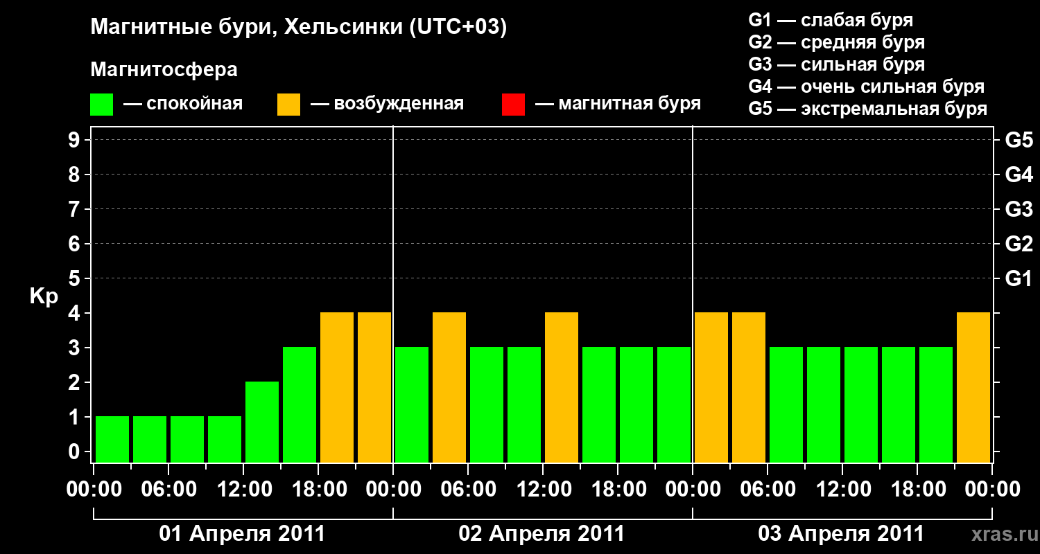 Магнитные бури Хельсинки — 3 апреля 2011 года