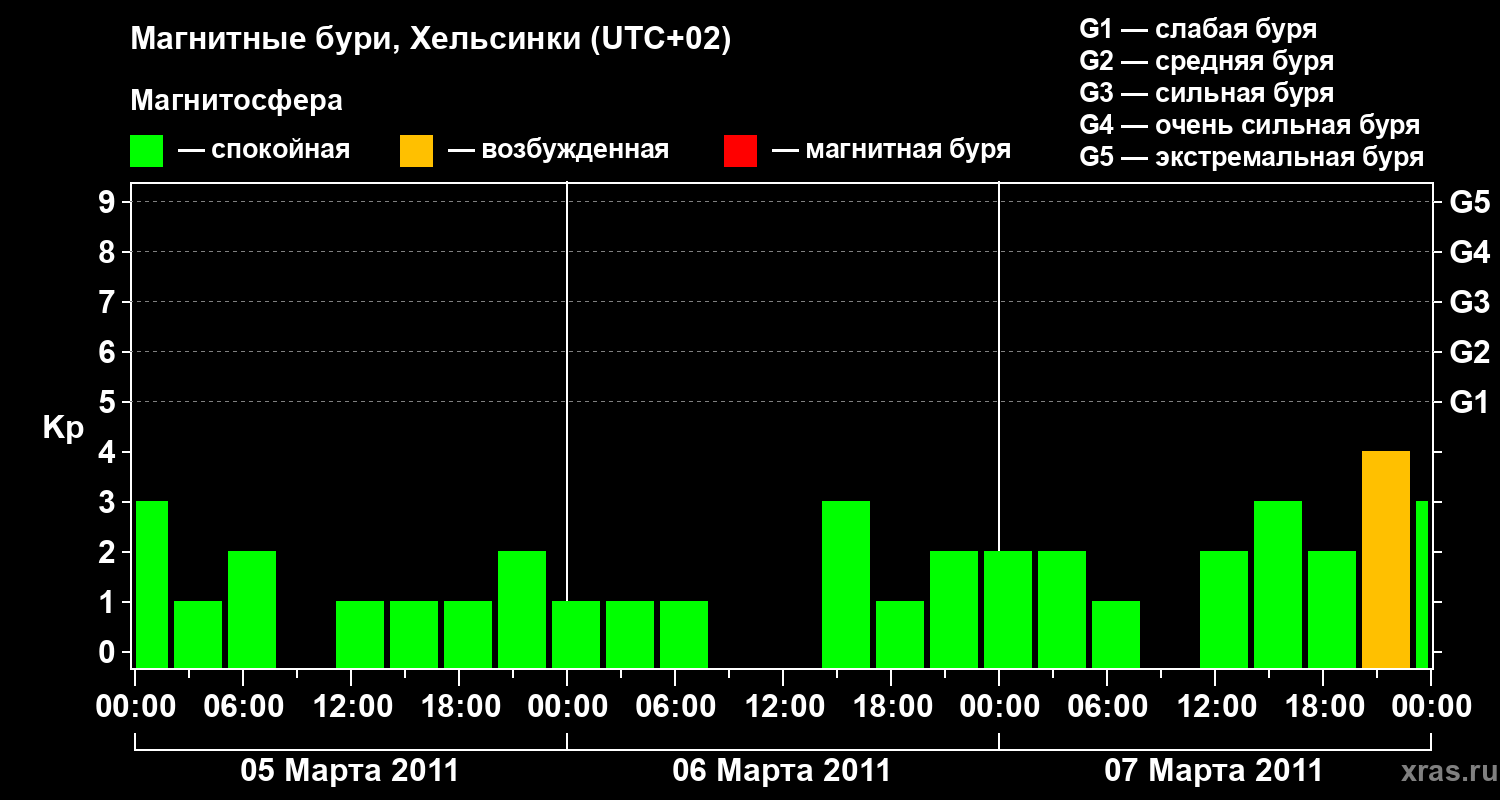 Магнитные бури Хельсинки — 7 марта 2011 года