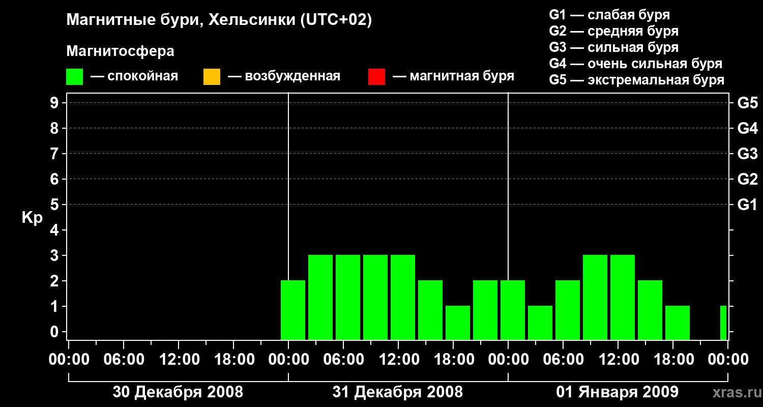 Магнитные бури Хельсинки — 1 января 2009 года