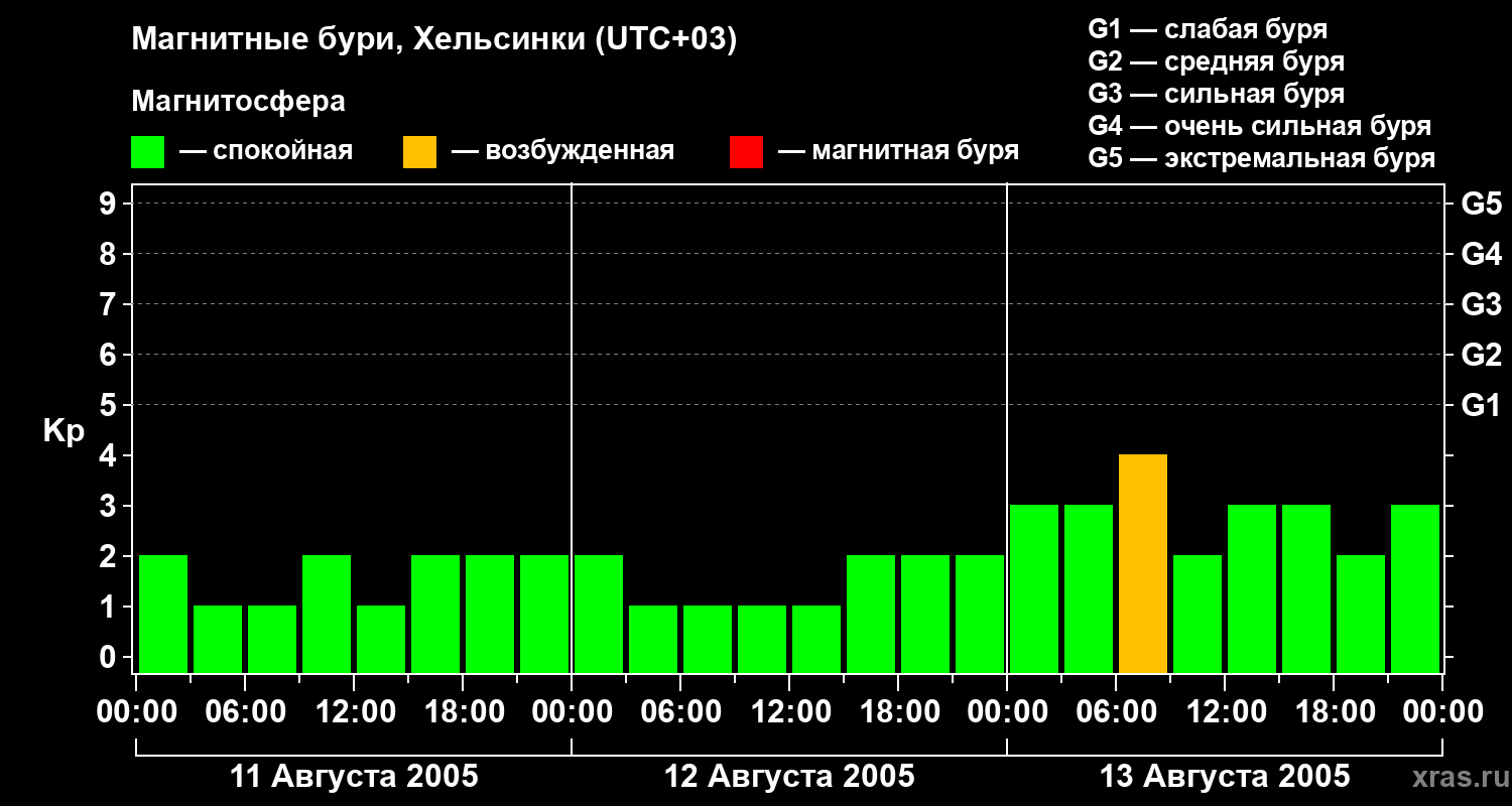 Магнитные бури Хельсинки — 13 августа 2005 года