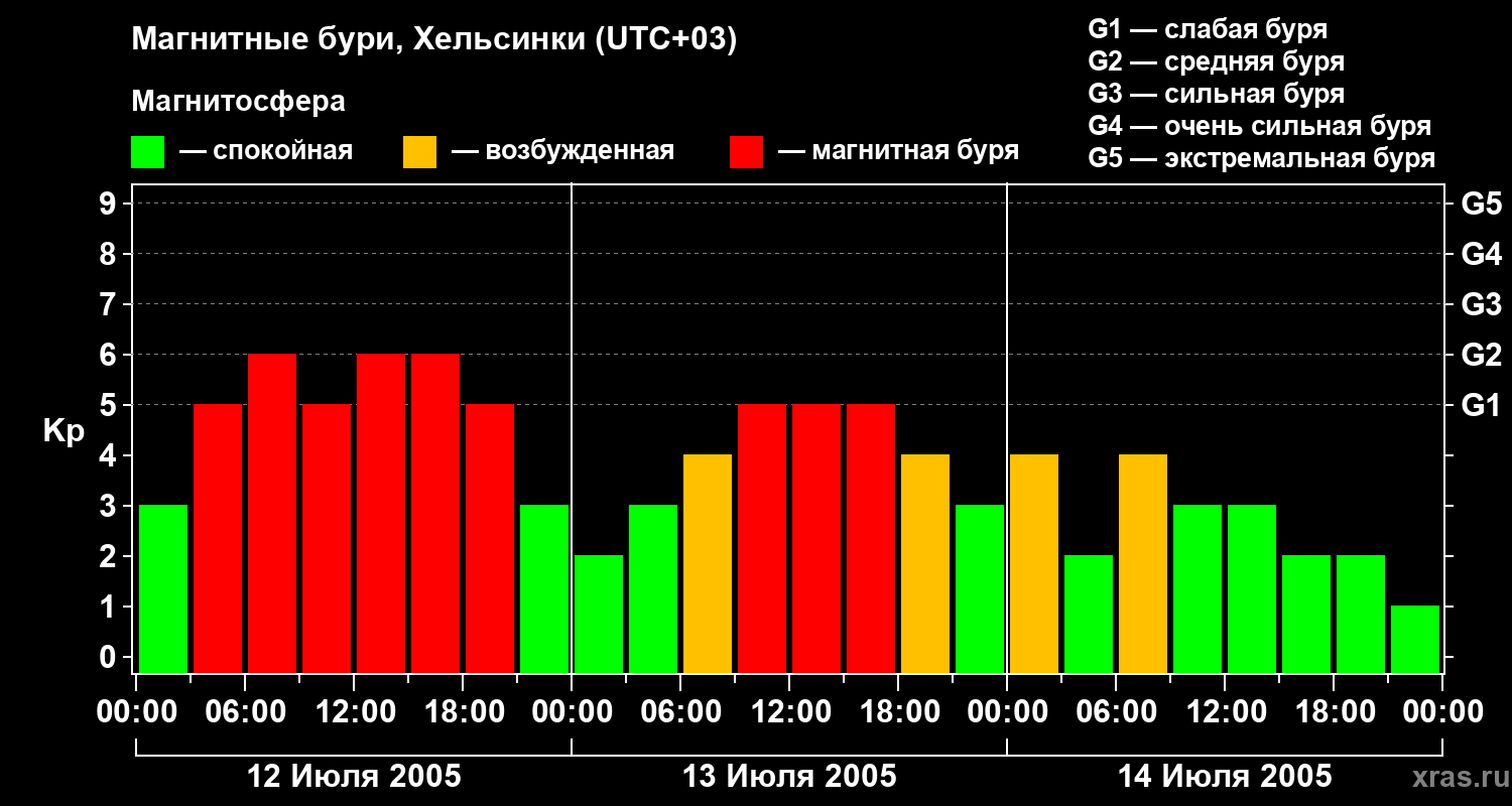 Магнитные бури Хельсинки — 14 июля 2005 года
