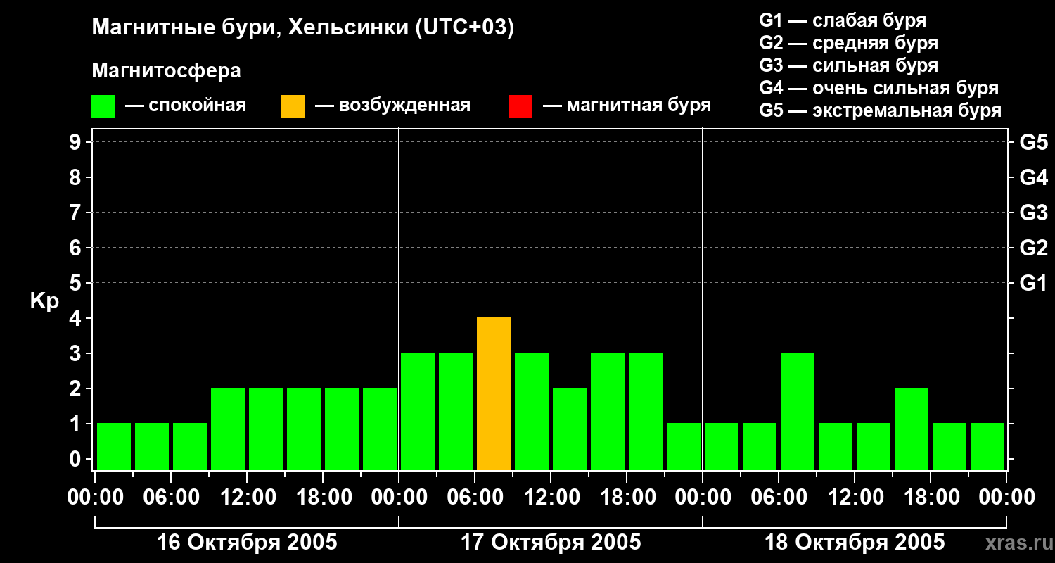 Магнитные бури Хельсинки — 18 октября 2005 года