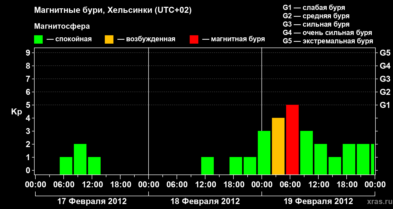 Магнитные бури Хельсинки — 19 февраля 2012 года