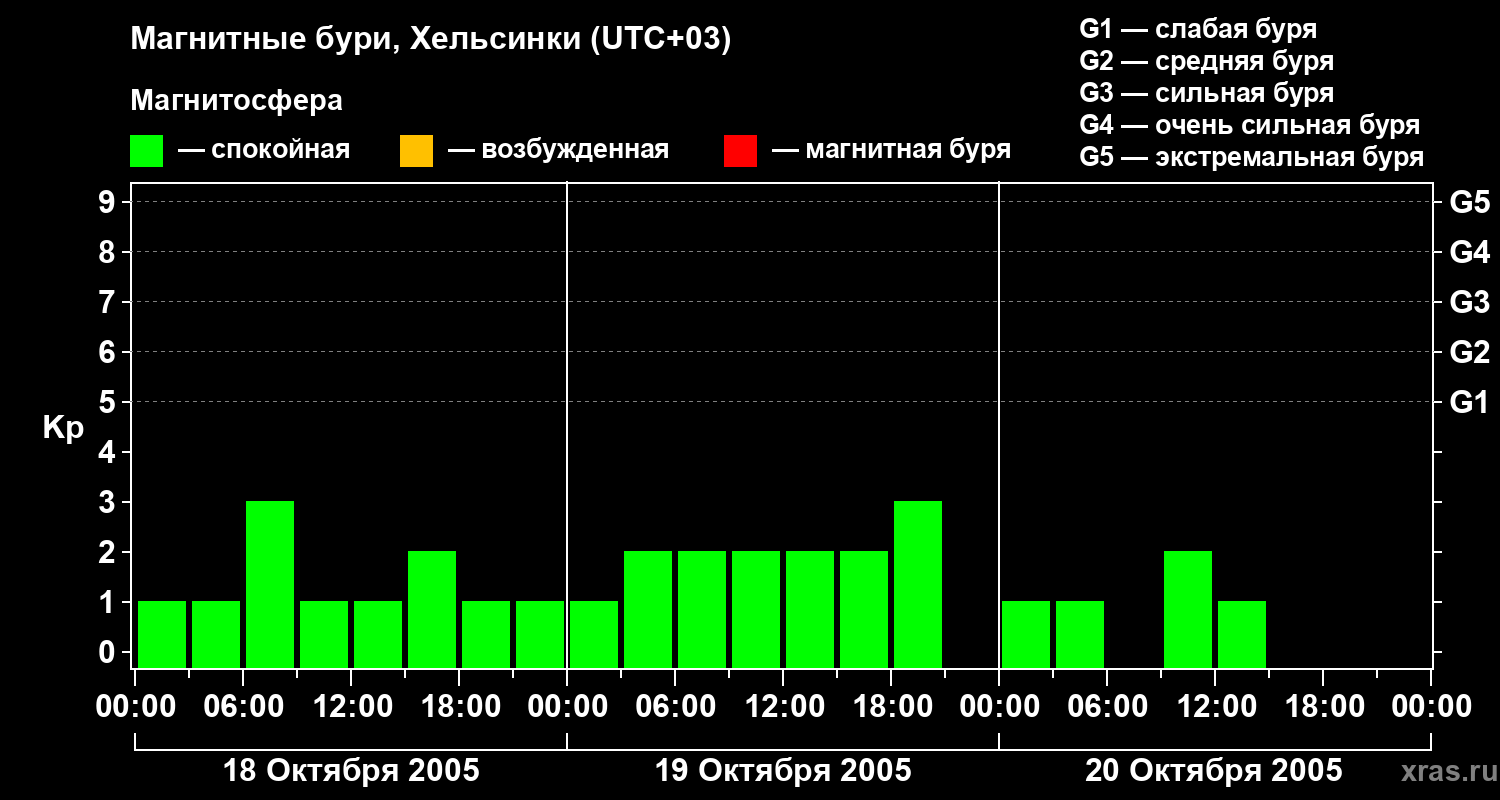 Магнитные бури Хельсинки — 20 октября 2005 года