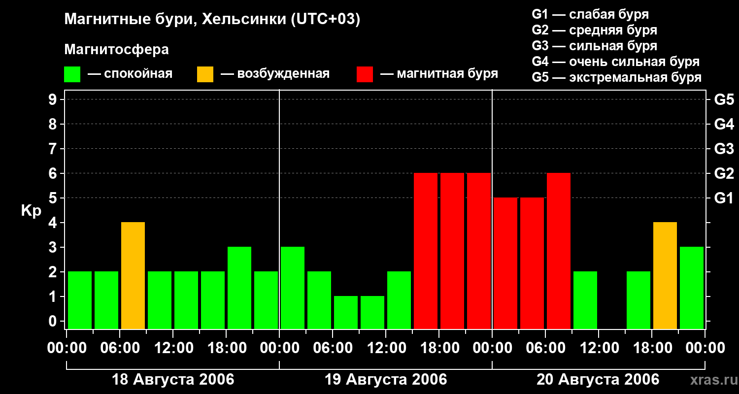 Магнитные бури Хельсинки — 20 августа 2006 года