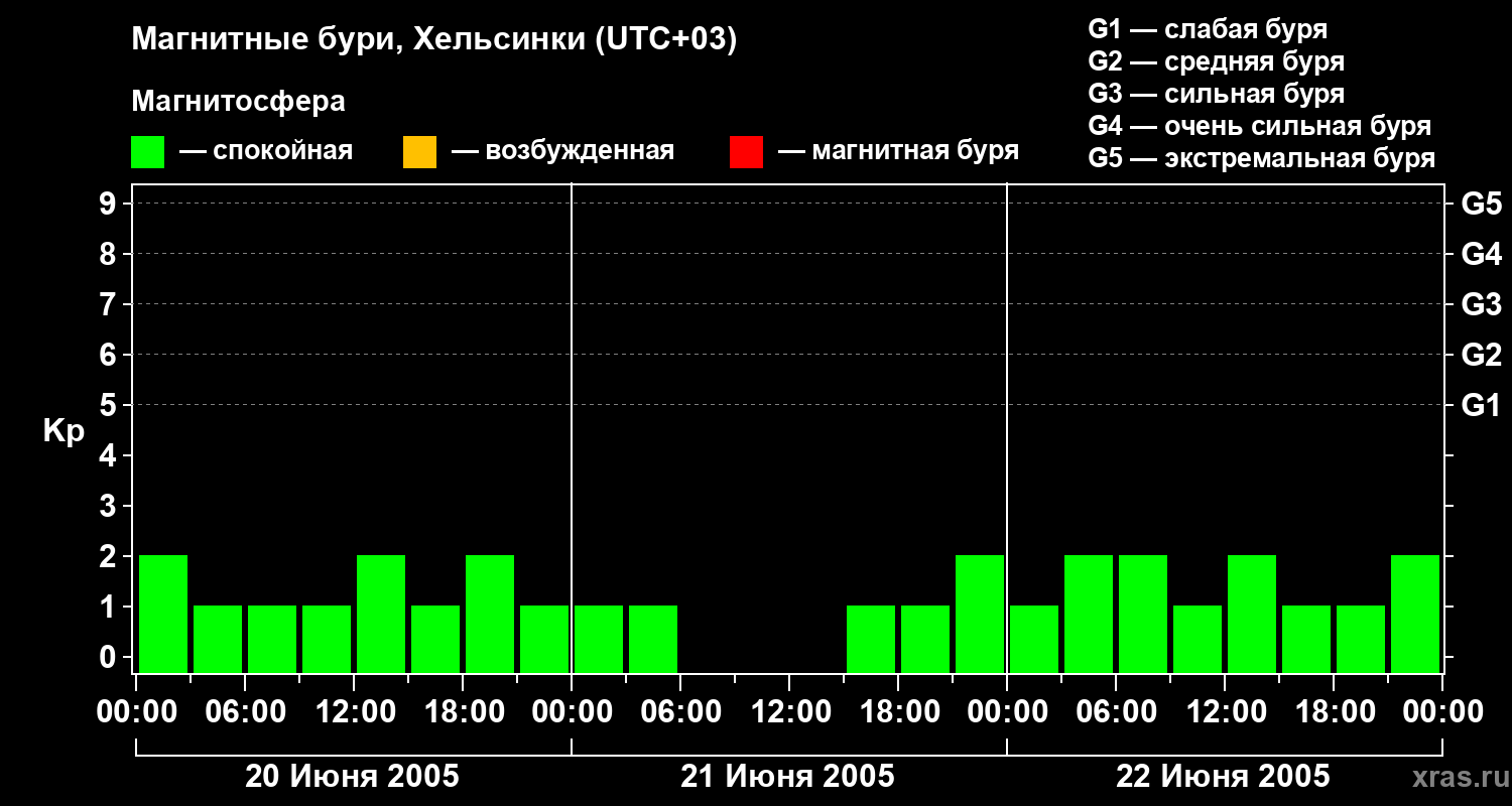 Магнитные бури Хельсинки — 22 июня 2005 года