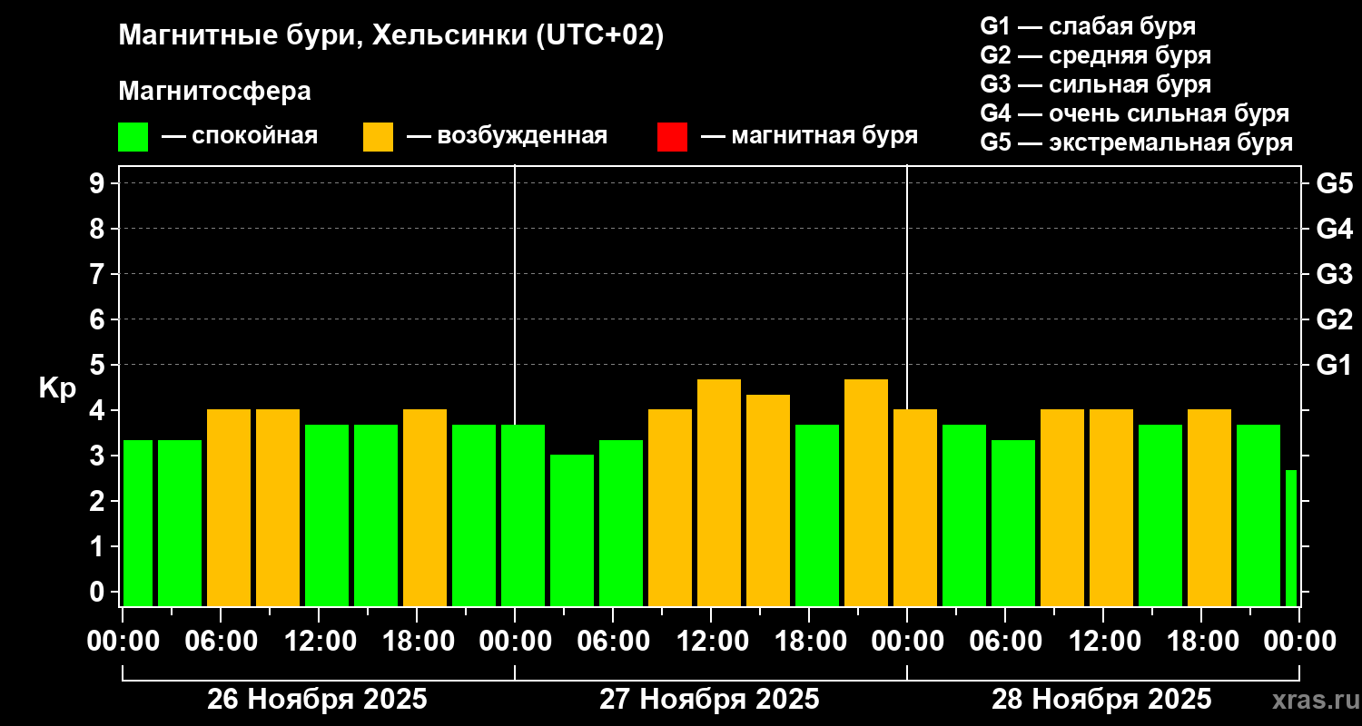 Магнитные бури Хельсинки 28 ноября 2025 года