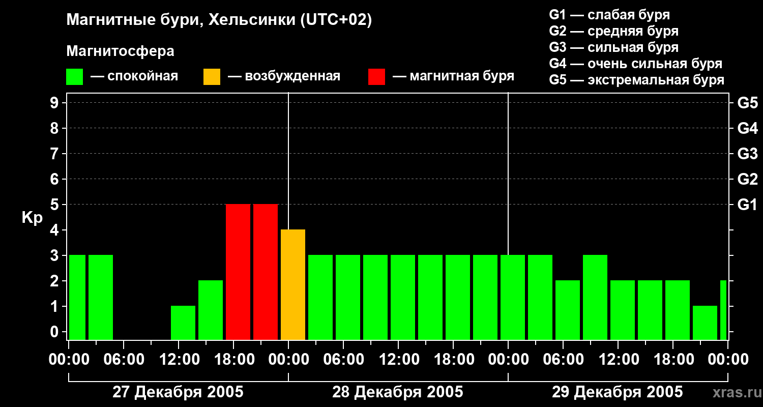 Магнитные бури Хельсинки — 29 декабря 2005 года
