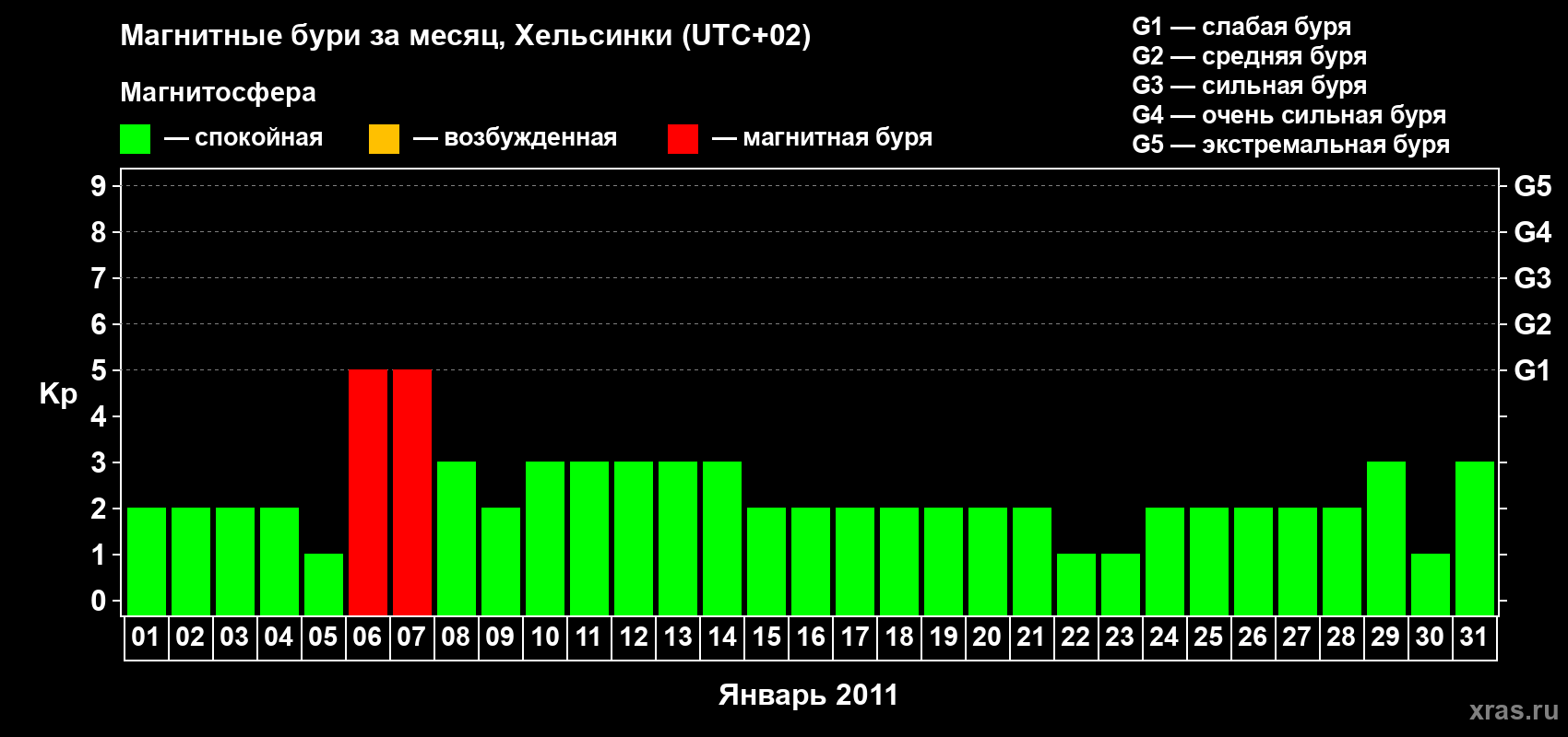 Магнитные бури Хельсинки в январе 2011 года