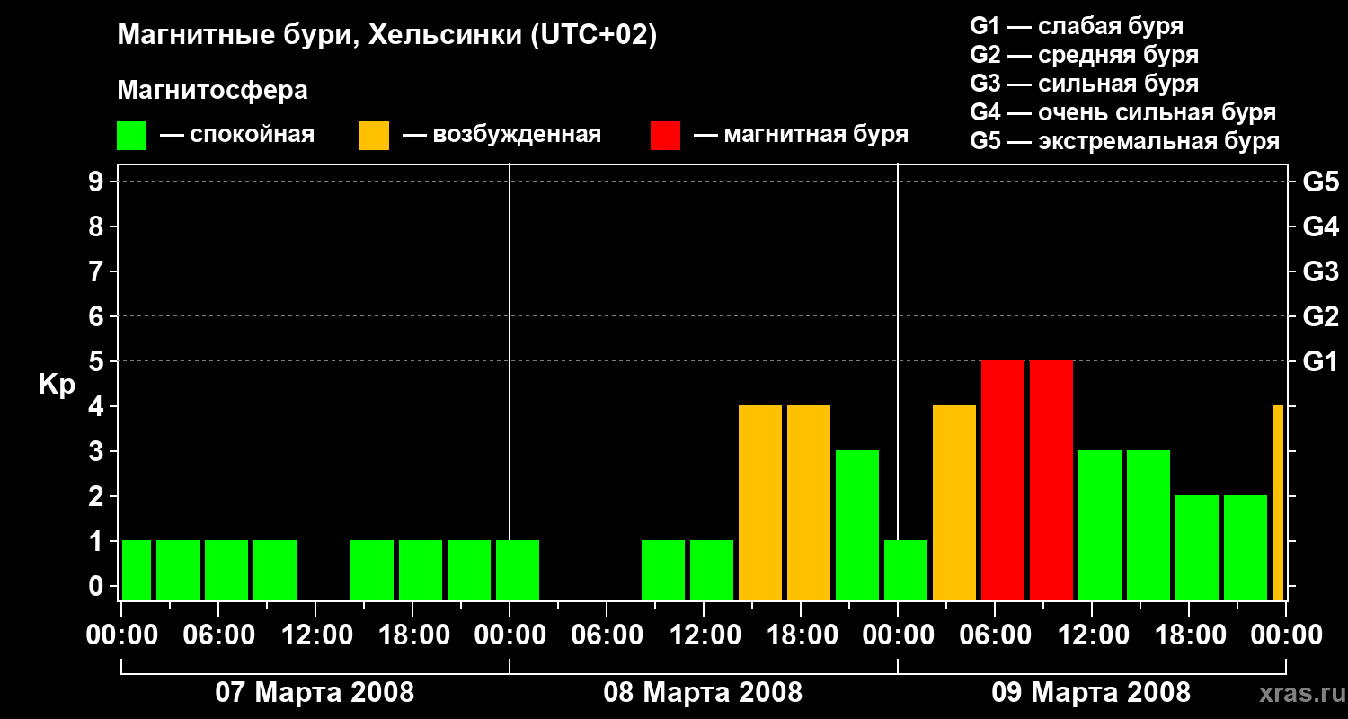 Магнитные бури Хельсинки — 9 марта 2008 года