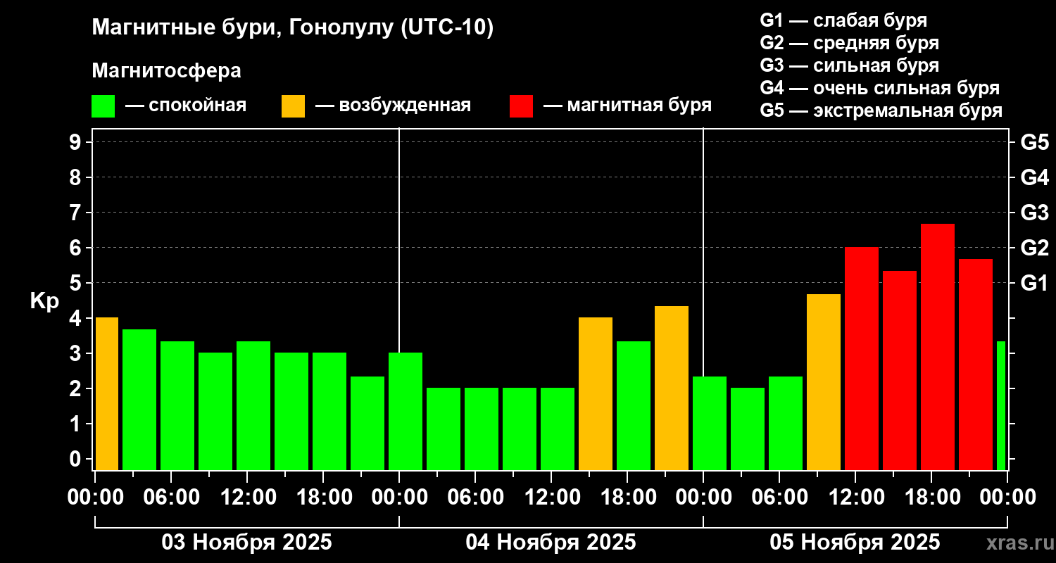Магнитные бури Гонолулу 5 ноября 2025 года