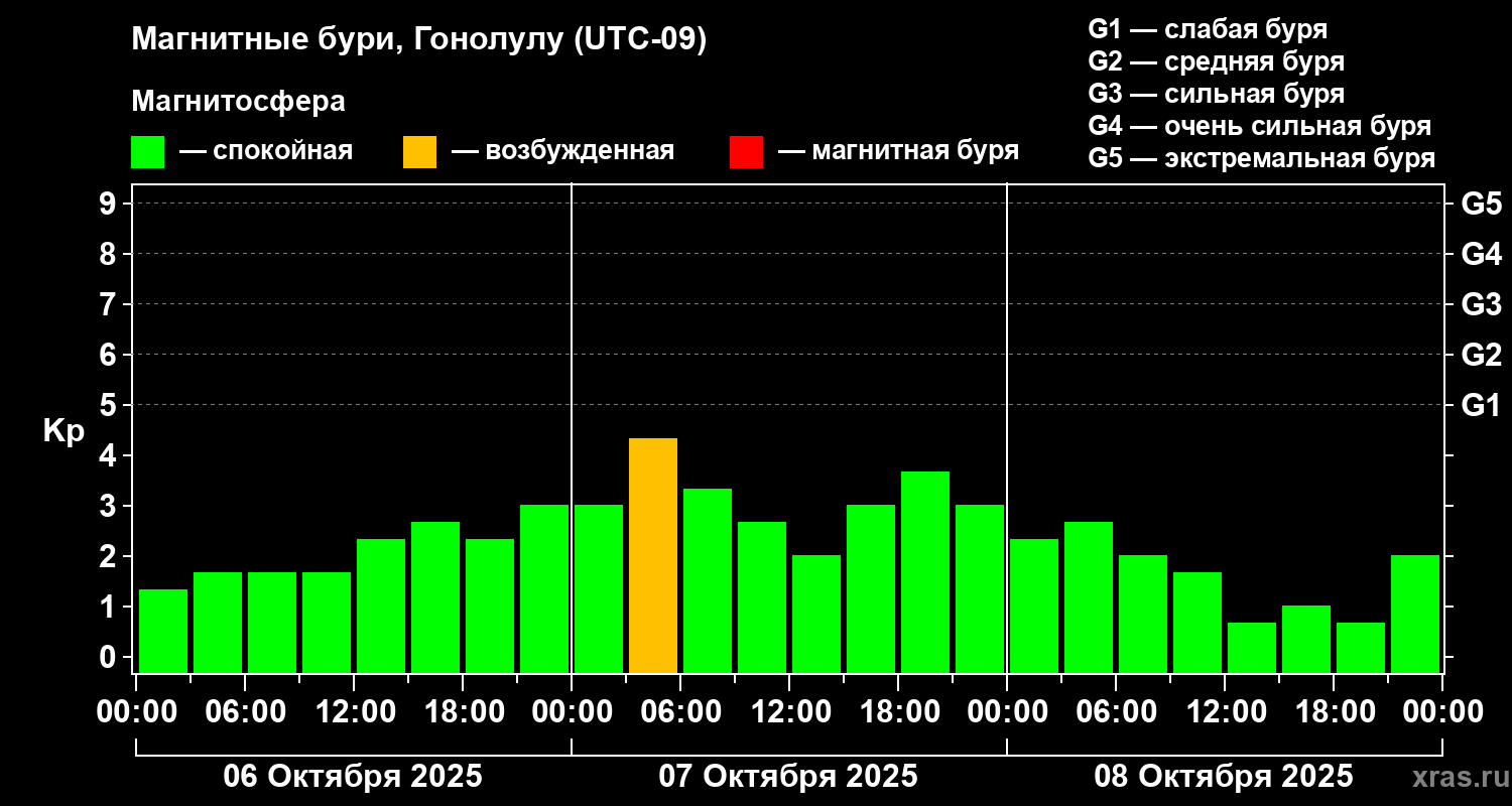 Магнитные бури Гонолулу 8 октября 2025 года