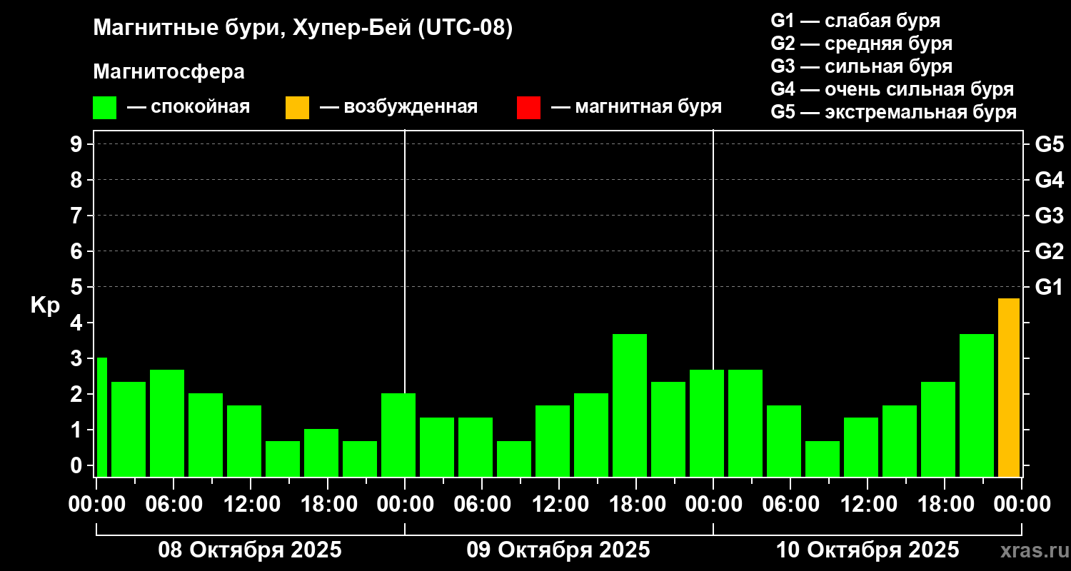 Магнитные бури в Хупер-Бейе 10 октября 2025 года